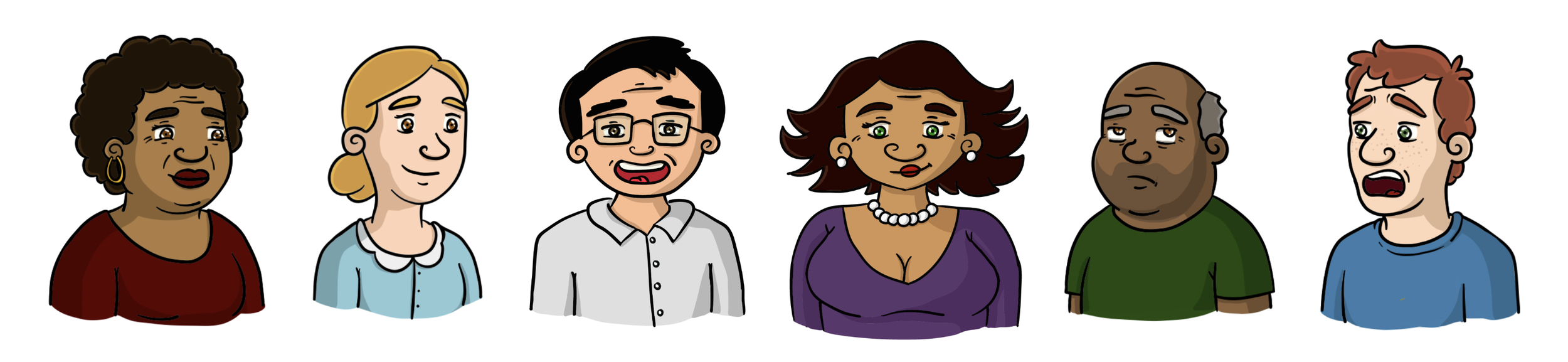 Character kit – I illustrated a library of characters with multiple poses, expressions, and cultural grounding, allowing instructional designers to easily build stories and resources without starting from scratch. This kit provides flexibility and scalability, making storytelling a central, repeatable part of resource design.